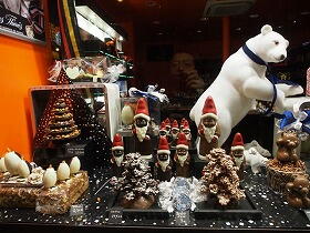 近年、市内中心部にはショコラのショップが多く開店して、可愛いクリスマス仕様で客を呼